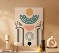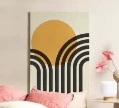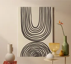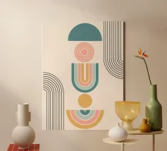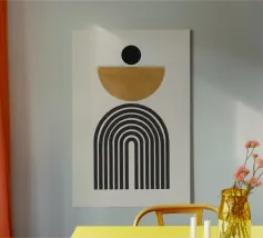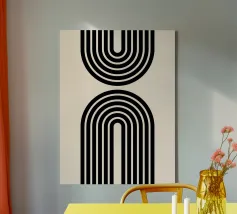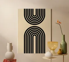 Explorez l'abstraction géométrique minimaliste avec cet impressionnant tableau d'art graphique inspiré du Bauhaus. Elle présente une composition captivante de formes géométriques en forme de U ou d'arche dans des couleurs vives (marron/orange et noir), disposées selon un motif vertical rythmé. Cette œuvre d'art incarne les principes de la forme, de la couleur et de la composition abstraite, avec une touche contemporaine influencée par le mouvement Bauhaus, soulignant le pouvoir des éléments géométriques simples et répétés et du contraste des couleurs. Ce fichier d'art numérique de haute qualité présente une résolution étonnante de 7000x5000 pixels à 300 dpi, garantissant un niveau de détail et de clarté exceptionnel.