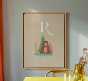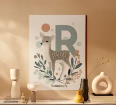 Motiv für Kinder mit Initiale und Tier. Personalisierbare Illustration für das Kinderzimmer. Ideal als Geschenk.