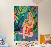 Peinture moderne Pop Art colorée Femme et guépard dans la jungle toile