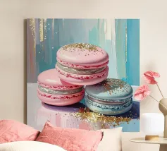 Apportez une touche gourmande à votre intérieur avec cette toile “Macarons” par youdesignme. Idéale pour les amateurs de pâtisserie ou ceux qui adorent les couleurs pastel, cette illustration adore transformer n’importe quelle pièce. Parfaite pour la cuisine, la salle à manger ou même une chambre douce, cette toile fera sourire tous vos invités. Facile à accrocher, elle est à la fois chic et ludique. Laissez-vous séduire par la légèreté et la magie des macarons, un véritable accroche-regard qui évoque des moments sucrés!