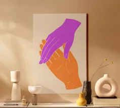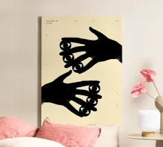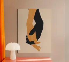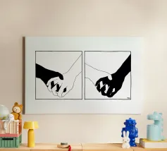 Cette œuvre d'art unique en son genre illustre la force obsédante du toucher et de la gestuelle. Les silhouettes noires des mains sur le fond blanc créent un équilibre harmonieux entre la forme et le vide, la proximité et la distance. Cette composition minimaliste confère de la profondeur à n'importe quel espace et incite à la réflexion sur les liens humains. Idéal pour les intérieurs modernes qui souhaitent apporter des touches subtiles mais significatives.