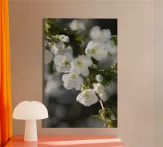 White spring blossoms on a blue background
