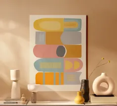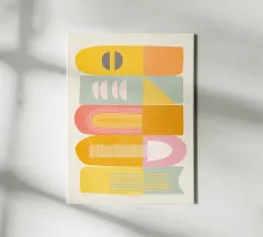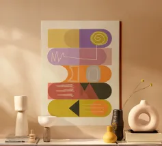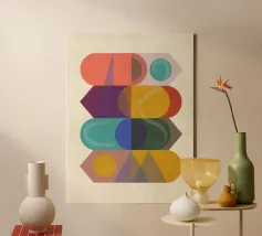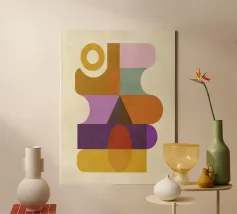 Ce poster moderne combine trois barres verticales et colorées avec une ligne courbe qui serpente à travers l'image. La géométrie claire rencontre le mouvement organique, les couleurs - rose, orange, jaune et violet - créent profondeur et énergie. Idéal pour les espaces créatifs, les concepts d'habitat modernes et les amateurs de design qui souhaitent allier forme claire et légèreté.