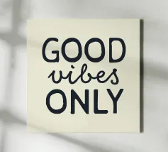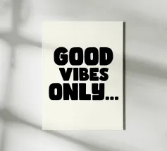 Quelques mots et tant de vérité ! Un design qui correspond à la devise de la vie. GOOD VIBES ONLY. De bonnes vibrations, une énergie positive et tout simplement une bonne ambiance.