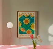 Transportez-vous dans les champs ensoleillés de la Toscane avec ce poster "Fiori e Piante" (Fleurs et plantes). Cette illustration vivante présente un ensemble joyeux de tournesols dorés au centre orange et de feuilles vertes et bleu-vert luxuriantes, le tout sur un riche fond sarcelle. Le style expressif et pictural capture la chaleur et la beauté de la campagne italienne. Ce poster numérique de qualité supérieure a été méticuleusement réalisé à une résolution de 7000x5000 pixels et 300 dpi, garantissant une clarté exceptionnelle et des détails éclatants pour une expérience de qualité digne d'une galerie d'art. Élevez votre décor avec ce poster exqui