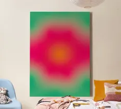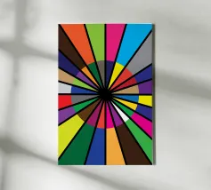 Cette œuvre d'art captivante présente une explosion radiale centrale de couleurs vives, dont le rose, le vert et le violet. Ce dessin abstrait crée une expérience visuelle saisissante qui convient à diverses utilisations artistiques.