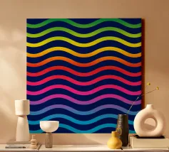 Transformez votre intérieur avec cette toile au motif de vagues colorées, parfaite pour apporter une touche vintage et dynamique à n'importe quelle pièce. Son design contemporain s'intègre facilement dans divers décors, notamment le salon, la chambre ou le bureau.