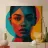 Visage de femme avec des formes géométriques et des blocs de couleur toile
