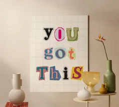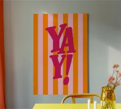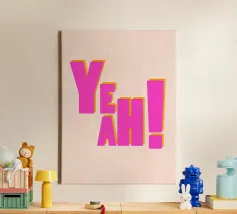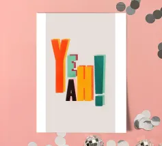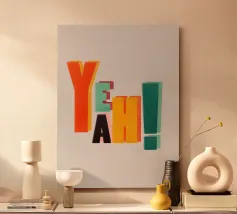 Un grand YEAH ! en gras pour illuminer votre journée. Cet imprimé amusant, d'inspiration rétro, mélange des lettres épaisses avec des couleurs dépareillées pour une ambiance imparfaite parfaite - pensez aux affiches vintage et aux collages découpés. Avec ses oranges chauds, ses jaunes ensoleillés, ses verts mentholés et ses pastels doux, cet imprimé est un véritable stimulant pour l'humeur. Que vous l'accrochiez dans votre studio, dans le couloir ou au-dessus de votre bureau, il est là pour apporter de la bonne énergie et un peu de chaos créatif de la meilleure façon qui soit. Par showmemars