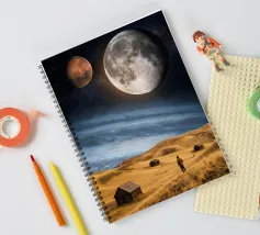 Découvrez la magie du voyage et du ciel nocturne grâce à cette œuvre d'art atmosphérique représentant une main qui touche délicatement le hublot d'un avion surplombant des dunes désertiques rougeoyantes. Un croissant de lune brille dans un ciel bleu profond rempli d'étoiles, créant un mélange serein d'errance et d'émerveillement. Les sables chauds et dorés contrastent magnifiquement avec les tons frais de la nuit, capturant le sentiment de solitude, de réflexion et de rêve au-dessus du monde. Parfait pour les amateurs de voyages, les minimalistes et les fans d'art cinématographique et de vues de fenêtre rêveuses.