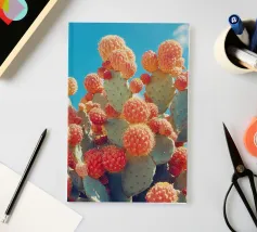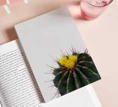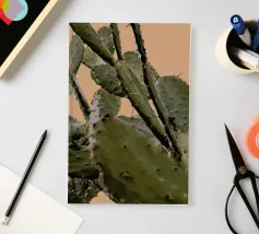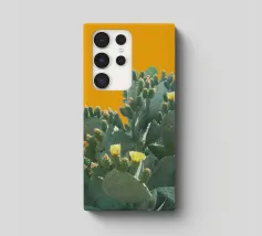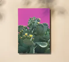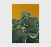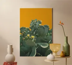 Kaktus mit Blüten vor senfgelbem Hintergrund. Idéal pour les fans de la nature et de la décoration de style vintage. Avec ce design zélé, mettez un point d'orgue dans votre maison. Photographie rétro minimaliste d'un grand cactus en fleurs. Parfait pour les amateurs de nature et pour une décoration murale élégante avec une touche vintage. Ajoutez un accent intemporel à votre espace avec ce design discret. #BloomingCactus #WallDecor #VintageStyle #Wanddeko #minimalart
