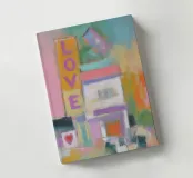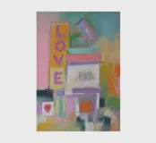 Le motif associe l'inscription "Love" à des formes abstraites et à des éléments architecturaux dans des couleurs pastel douces. Des coups de pinceau délicats et des dégradés de couleurs doux créent un équilibre harmonieux entre la typographie et l'art moderne. L'œuvre respire la légèreté, le romantisme et l'élégance contemporaine - idéal pour un intérieur stylé avec une touche artistique.
