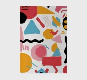 Une composition abstraite chaotique et amusante dans le style Memphis, avec un assortiment aléatoire de formes géométriques, de gribouillis et de motifs. L'œuvre est énergique, ludique et a une ambiance rétro.