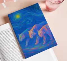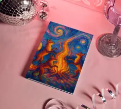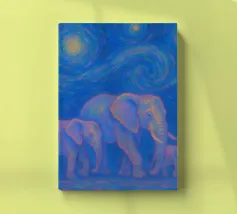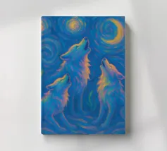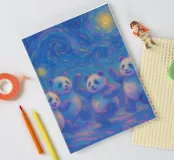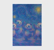 Apportez de la joie et de la couleur à n'importe quel espace avec cette œuvre d'art fantaisiste représentant quatre pandas enjoués dansant sous un ciel nocturne étoilé et tourbillonnant. Inspiré par des coups de pinceau expressifs et des teintes oniriques, le dessin allie charme, mouvement et énergie vibrante. Parfaite pour les chambres d'enfants, les crèches et tous ceux qui aiment l'art mignon et exaltant, cette pièce ajoute chaleur et imagination à votre décor. Fusion délicieuse de fantaisie et d'art, elle ne manquera pas de susciter des sourires et d'illuminer votre mur de sa lueur nocturne magique.
