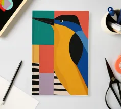 "Patchwork Perfection" capture la beauté vibrante des oiseaux, chacun orné d'une mosaïque de motifs colorés. Cette impression d'art célèbre l'harmonie de la palette de la nature à travers les détails complexes des plumes.