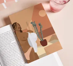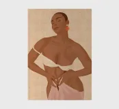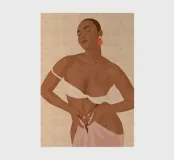 Illustration d'une femme sur le thème de la plage aux tons beige