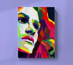 Portrait vibrant et géométrique de Sinead O'Connor dans le style WPAP, avec des formes audacieuses et anguleuses et un éventail frappant de couleurs vives et contrastées. L'œuvre capture ses traits emblématiques, tels que son crâne rasé, ses yeux perçants et sa forte expression faciale, à l'aide de blocs de couleurs vifs et fragmentés. La composition met l'accent sur la profondeur et l'émotion tout en conservant l'esthétique cubiste pop-art caractéristique de WPAP, créant ainsi un hommage moderne et visuellement dynamique à la chanteuse légendaire.
