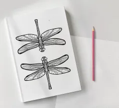 Cette illustration joyeuse d'une libellule avec le texte rose amusant "Sum Sum Sum" capture la légèreté et l'espièglerie de la nature de manière minimaliste.