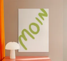 Commence ta journée avec un joyeux Moin ! Cet imprimé de style manuscrit avec une écriture bleue apporte une fraîcheur nordique dans chaque maison. Idéal pour chaque pièce qui a besoin d'une dose de charme et d'une atmosphère détendue. Que ce soit dans l'entrée, le salon ou le bureau, cet imprimé est une salutation simple qui répand immédiatement la bonne humeur.
