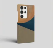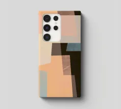 Les nuances de brun et de bleu interagissent dans une série de formes géométriques abstraites qui se chevauchent, créant une composition moderne et équilibrée. La surface texturée et la palette de couleurs évoquent un sentiment de profondeur et de sophistication.