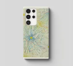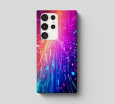 Un affichage vibrant illustrant les conséquences d'une collision de particules, avec des couleurs vives et des traînées énergétiques émanant d'un point central, ressemblant à une visualisation scientifique.