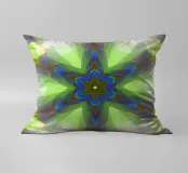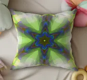 Étoile à 5 branches avec des formes décorées dans les couleurs vert-jaune-bleu.