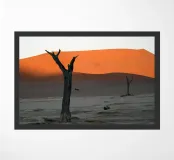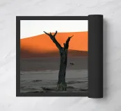 Each dune, shaped by the whispering wind, forms smooth, curving ridges that cast sharp, elegant shadows. The surface shimmers with heat, and fine grains of sand dance lightly across the crest, carried by the breeze. In this silent, arid world, the dunes stand as ever-changing sculptures — timeless, majestic, and mysterious.