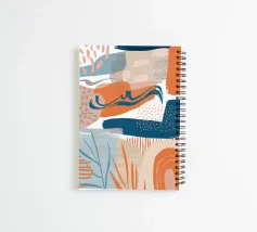 A modern abstract composition featuring terracotta colored arches, textured blue shapes, and organic lines. The artwork blends bohemian aesthetics with minimalist and abstract elements for a trendy, balanced piece.
