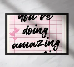 Trouvez l'endroit idéal grâce à notre affiche "Exactement là où vous devez être". Cette œuvre d'art unique réimagine l'addition classique d'un diner rose, la transformant en un message puissant et rassurant dans une écriture audacieuse et percutante. Il s'agit d'une œuvre inspirante, parfaite pour ajouter une touche de motivation et de confiance à votre cuisine, votre bureau ou votre espace personnel. Notre art numérique est méticuleusement réalisé à une résolution de 7000x5000 pixels avec 300 dpi, ce qui garantit une clarté exceptionnelle et une finition magnifique et de haute qualité pour votre poster premium, en faisant un objet de décoration vraiment unique et significatif.