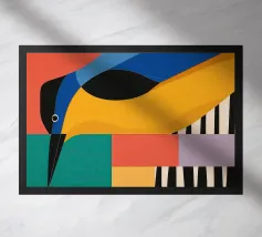 "Patchwork Perfection" capture la beauté vibrante des oiseaux, chacun orné d'une mosaïque de motifs colorés. Cette impression d'art célèbre l'harmonie de la palette de la nature à travers les détails complexes des plumes.