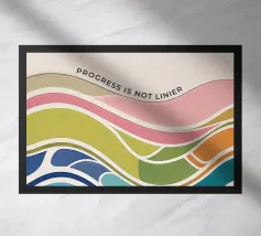 This colorful artwork features flowing rainbow-like waves accompanied by the uplifting phrase “Progress Is Not Linear.” It serves as a gentle reminder that growth comes with ups and downs, and setbacks are part of the journey. Perfect for motivating any space with positivity, resilience, and encouragement for self-development.