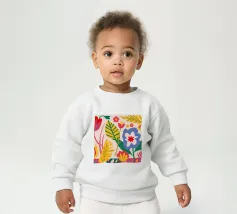 Nos sweatshirts pour bébé confortables sont composés de 85 % de coton biologique et éthique et de 15 % de polyester recyclé.