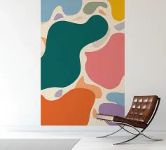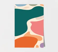 Une œuvre d'art abstraite dynamique présentant une collision de formes organiques audacieuses dans des couleurs vibrantes telles que l'orange, le rose et la sarcelle profonde. La composition est énergique et moderne, et constitue une affirmation visuelle forte.