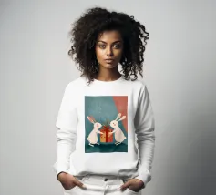 Deux lapins aux formes géométriques douces et aux tons de terre apaisants. Leur représentation dans différentes nuances de brun apporte une note ludique mais élégante. Une œuvre d'art parfaite qui incarne l'ambiance printanière et la joie de la saison. Représentation géométrique de deux lapins Tons terre harmonieux de beige, marron et blanc Idéal pour les thèmes printaniers et la décoration de Pâques Design moderne avec une touche minimaliste Parfait pour les amateurs d'art qui apprécient les représentations créatives d'animaux