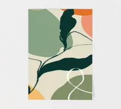 Une composition élégante et minimaliste présentant des formes botaniques esquissées sur des blocs de couleurs sourdes et organiques. L'œuvre mêle dessins linéaires et formes abstraites pour une esthétique naturelle sophistiquée et moderne.