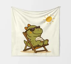 Un joyeux capybara portant des lunettes de soleil se prélasse sur un banc en dégustant une pastèque dans une ambiance tropicale. Le texte au-dessus indique "I'M NOT LAZY" et en dessous, "I'M JUST ON CAPYBARA TIME".