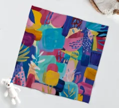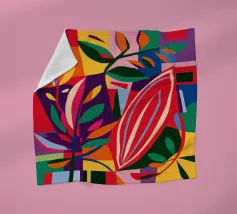 Une grille de différents motifs abstraits et géométriques dans une palette de rose, de rouge et de sarcelle crée un patchwork moderne, artistique et décoratif.