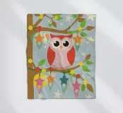 L'illustration détaillée représente un hibou serein sur une branche d'arbre, dégageant une aura de paix et de sagesse.