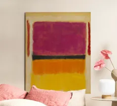 Inspirée par le style de Mark Rothko, cette peinture abstraite présente des champs de couleurs qui se fondent doucement dans le violet, le vert foncé et le beige, créant ainsi une ambiance méditative et émotionnelle. Au centre, un champ clair confère à la composition calme et profondeur. La disposition minimaliste et moderne des blocs de couleurs invite le spectateur à une réflexion contemplative sur l'effet pur de la couleur et de la forme.