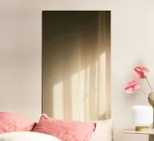 La lumière douce du soleil traverse des rideaux translucides, projetant des ombres douces et créant un motif abstrait paisible. Cet effet apaisant constitue une toile de fond idéale pour les fonds d'écran de téléphone.