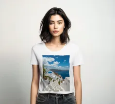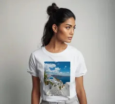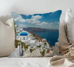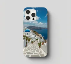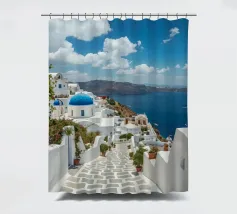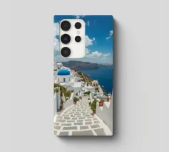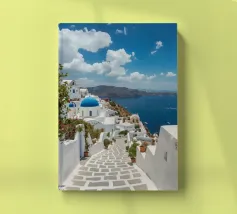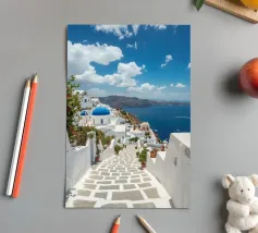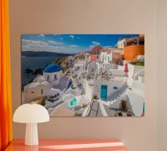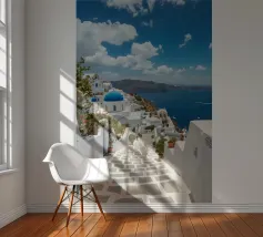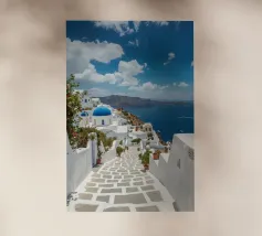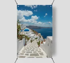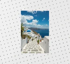 Bâtiments blanchis à la chaux et chemin de pierre à Santorin hahnemühle