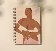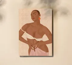 Illustration d'une femme sur le thème de la plage aux tons beige