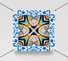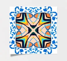 Carreau méditerranéen abstrait à motif complexe formes bleu marocain