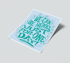 Un extrait des paroles du refrain de "Heroes" de David Bowie dans une élégante typographie cygane sur un charmant fond bleu, ce qui en fait un complément idéal pour votre bureau, votre café, votre salle de séjour ou votre salon. Le texte en forme de cœur rose contrastant transmet une atmosphère d'amour et crée un look charmant et moderne qui s'adapte à tous les styles de décoration. C'est le cadeau idéal pour les mélomanes, les fans de David Bowie ou tous ceux qui ont de bons souvenirs de "Heroes" de David Bowie dans leur vie de tous les jours. Nous pouvons être des héros Juste pour un jour - David Bowie