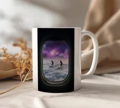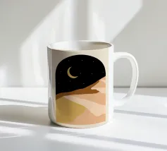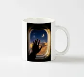 Découvrez la magie du voyage et du ciel nocturne grâce à cette œuvre d'art atmosphérique représentant une main qui touche délicatement le hublot d'un avion surplombant des dunes désertiques rougeoyantes. Un croissant de lune brille dans un ciel bleu profond rempli d'étoiles, créant un mélange serein d'errance et d'émerveillement. Les sables chauds et dorés contrastent magnifiquement avec les tons frais de la nuit, capturant le sentiment de solitude, de réflexion et de rêve au-dessus du monde. Parfait pour les amateurs de voyages, les minimalistes et les fans d'art cinématographique et de vues de fenêtre rêveuses.
