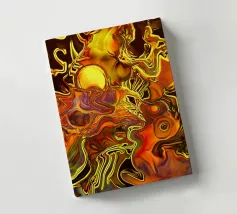 Une image d'un motif abstrait et dynamique dans les couleurs jaune, orange et violet.