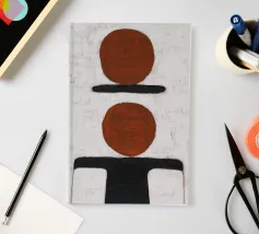 Illustration minimaliste avec des vases, des bols et des formes géométriques disposés dans une composition carrée épurée. Les teintes naturelles de beige et de terre en font un imprimé polyvalent pour les intérieurs modernes, scandinaves ou bohèmes.