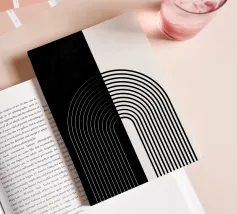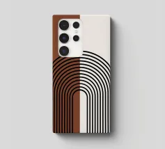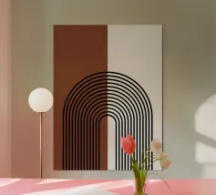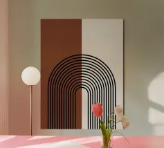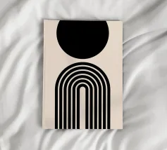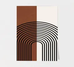 Ce design élégant combine un demi-cercle noir aux lignes épurées avec un fond bicolore brun chaud et crème. La composition minimaliste et harmonieuse rend ce motif idéal pour les tableaux muraux, les coussins, les tasses et les coques de téléphone portable. Il apporte une atmosphère moderne et apaisante dans chaque pièce et est parfait pour les amateurs de styles boho et scandinave. Une œuvre d'art intemporelle qui convient aussi parfaitement comme cadeau pour les passionnés de design.