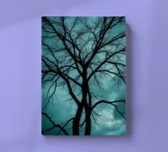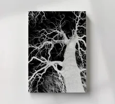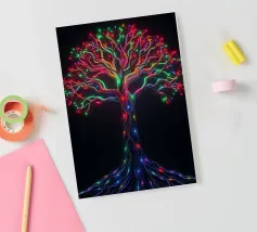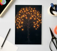 Une représentation abstraite d'un arbre aux branches illuminées se détache sur un fond sombre, créant une esthétique saisissante et moderne, idéale pour les arrière-plans mobiles.