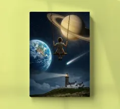 Entrez dans une fantaisie cosmique ludique avec cette œuvre d'art surréaliste vibrante représentant une paire de bottes robustes flottant sans effort dans une galaxie colorée. Entouré de planètes, d'étoiles, de comètes et de nuages de nébuleuse, le dessin mélange humour, imagination et aventure en un seul visuel audacieux. Les tons chauds des bottes contrastent magnifiquement avec l'arrière-plan de l'espace profond, créant une pièce amusante et accrocheuse, parfaite pour les rêveurs, les explorateurs et les amateurs d'art cosmique excentrique.